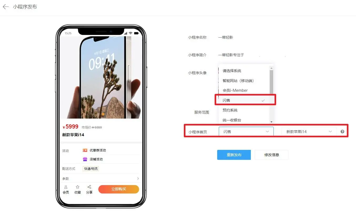 三、发布小程序管理小程序,选择小程序首页,点击【发布】即可。