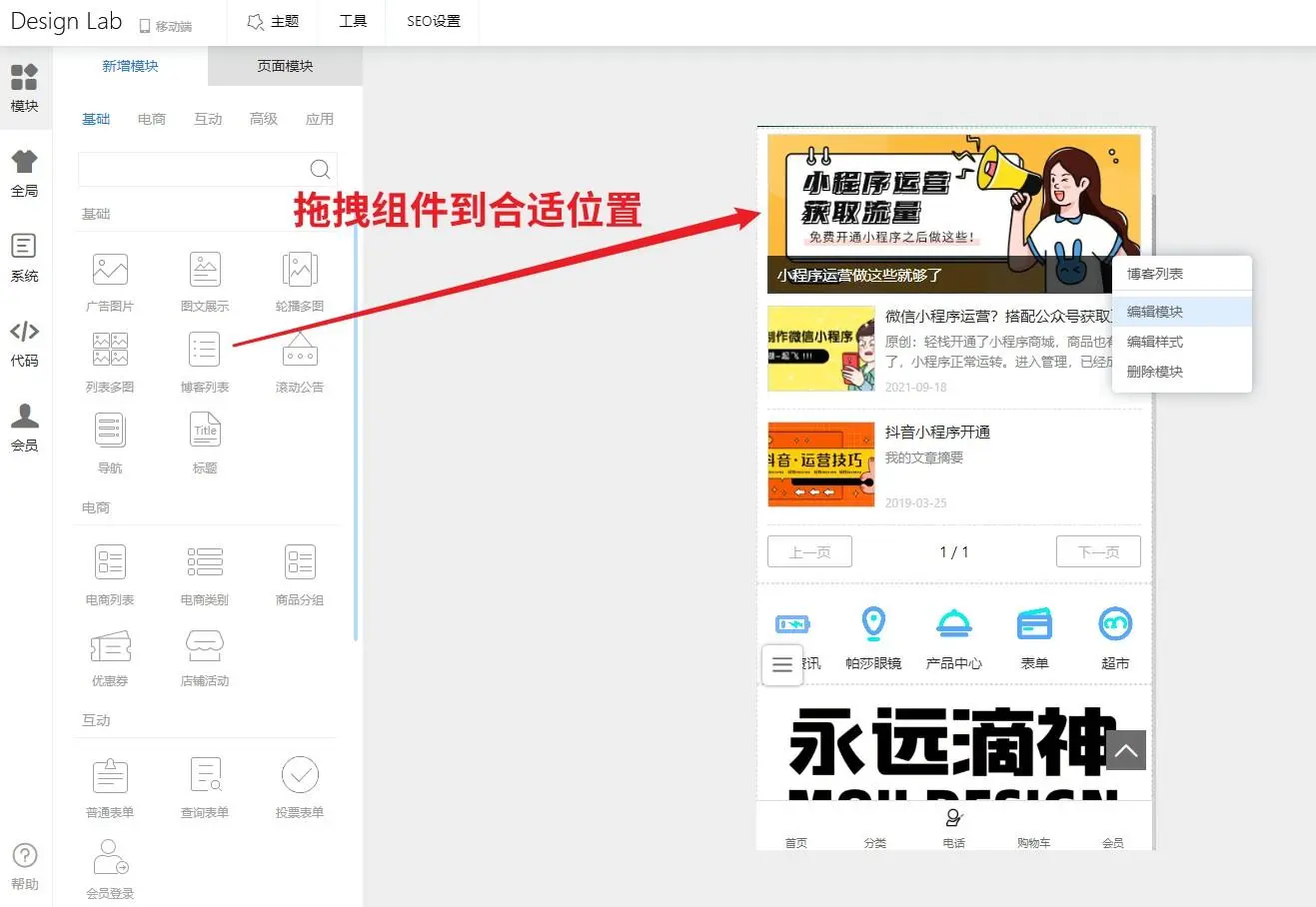 开发小程序比想象中简单太多,也不需要自己慢慢写代码,30分钟搭建一个小程序,审核通过就可以使用了。 最繁琐的添加组件环节,只要拖拽或点击即可添加不同的组件,通过排列组合和设置基本参数,就能得到一个功能丰富的小程序。