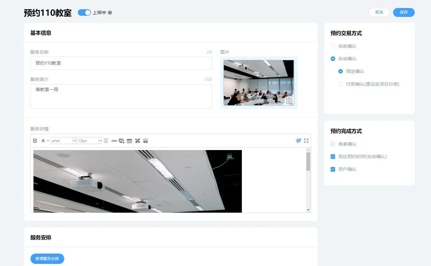 20分钟是平均用时,如果你添加的组件不多,可能连20分钟都不需要。 自助舞蹈室,是不是借出场地供他人使用呢?这种情况可以创建预约项目,用户点击【立即预约】就能预约场地,并选择时间。