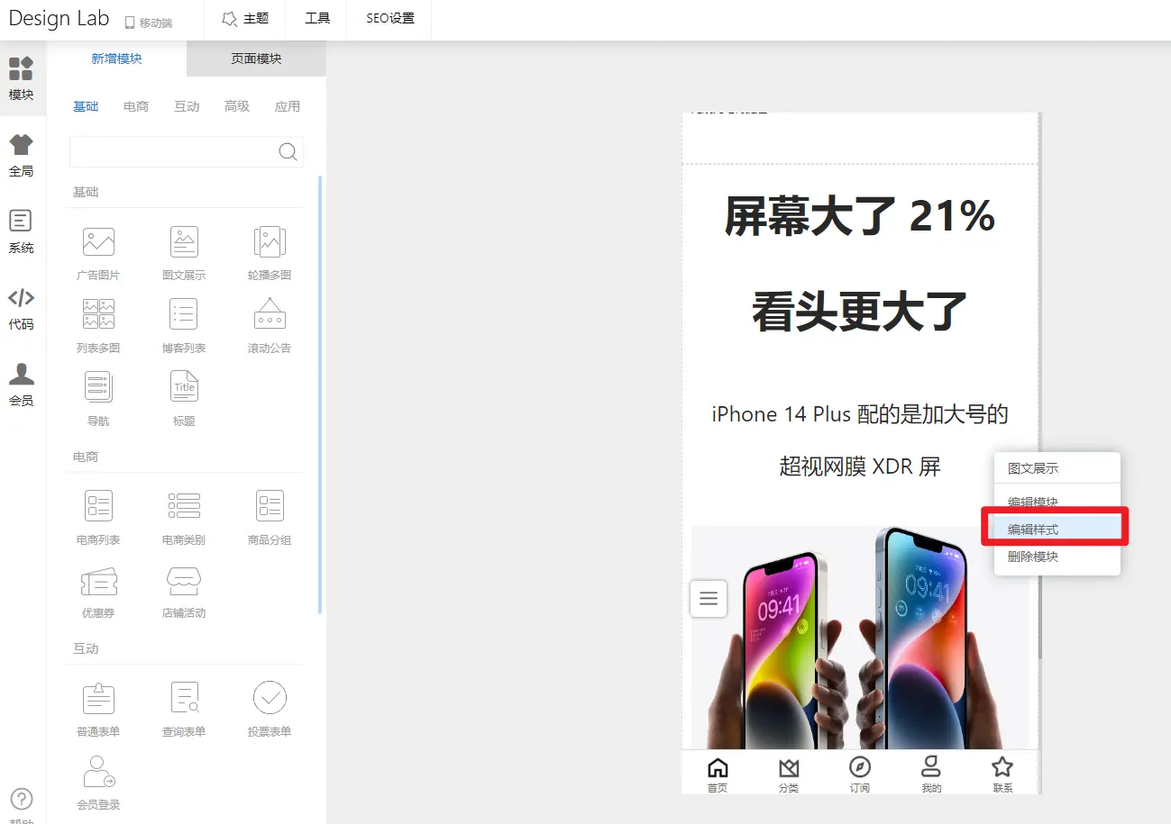 那么,用第三方平台就能制作,0成本,30分钟搭建小程序,操作简单,编辑小程序页面,只要点击/拖拽添加组件,右键编辑设置参数。