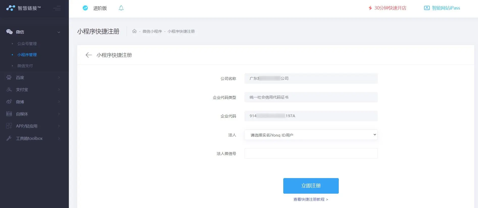 这个时候就算跟你说很简单,你肯定是不信的。事实上,有网页设计基础的朋友,可以无缝衔接开发小程序。需要掌握的前端的语言只有html,css和JavaScript。 用第三方平台开发之所以说一点都不难,不是因为代码,而是小程序可以用第三方平台开发,不花一分钱,耗时仅30分钟,没有技术门槛,小白立即上手。 只要会用电脑就会开发小程序,现在你还觉得制作小程序很难吗? 按照流程操作,轻轻松松开发小程序,详情可以看这篇教程。 还是简单的介绍一下吧~ 开发小程序流程可分为3步:1.注册小程序(耗时5-8分钟)你可以在公众平台自主注册小程序,授权到第三方平台开发,也可以复用公众号资质注册小程序;还可以直接用第三方平台的【绿色通道】开发小程序,免去每年的认证费。