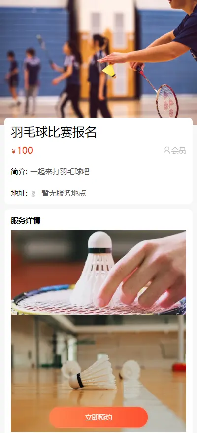 查看效果,是一个羽毛球活动报名预约页面: