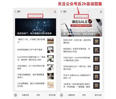 先来看一个例子,关注公众号之后自动回复的内容是文章,然后两个小时之后自动回复其他内容。如何设置?关注回复可以在公众平台设置,但是定时回复设置不了。把公众号授权到第三方平台进行管理可以设置定时回复
