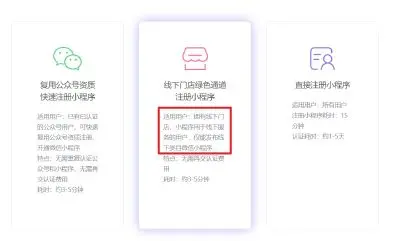 用轻栈注册小程序,免去认证费的选项是“绿色通道”,但是这里写着适用用户:“拥有线下门店,小程序用于线下服务的用户,仅能发布线下类目微信小程序。
